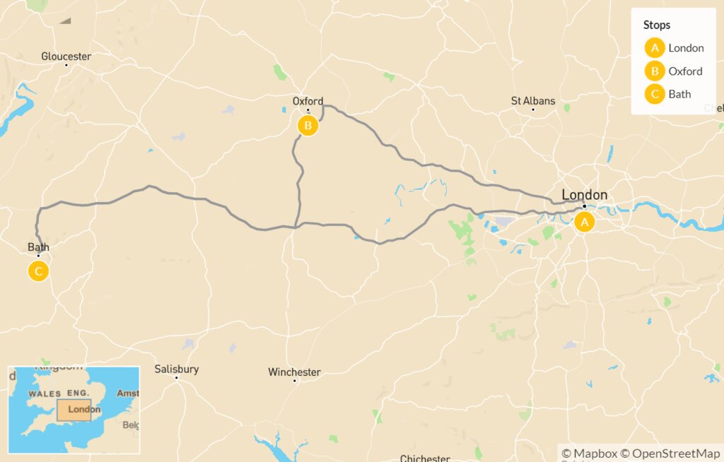 Map of Family Fun in London, Oxford & Bath: Wizards, Castles, Museums & Royalty – 14 Days
