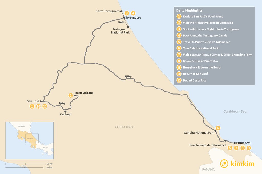 | Day 10 | Return to San José | Puerto Viejo de Talamanca |