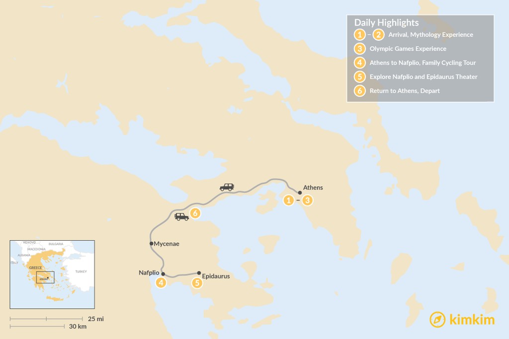 Map of Family Holiday in Athens & Nafplio – 6 Days