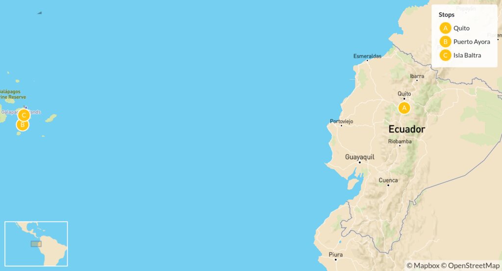 Map of Family Holiday in Quito & the Galápagos Islands – 14 Days
