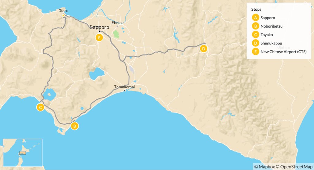 Map of Family Tour of Japan’s Hokkaido Island: History, Culture & Outdoor Fun – 10 Days
