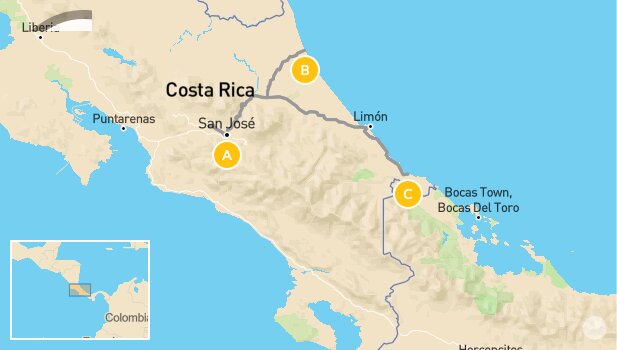 Map of Family Tour of Wetlands & Caribbean Beaches – 6 Days