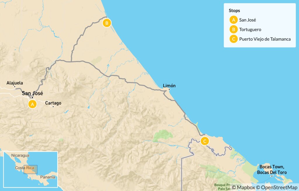 Map of Family Tour of Wetlands & Caribbean Beaches – 7 Days