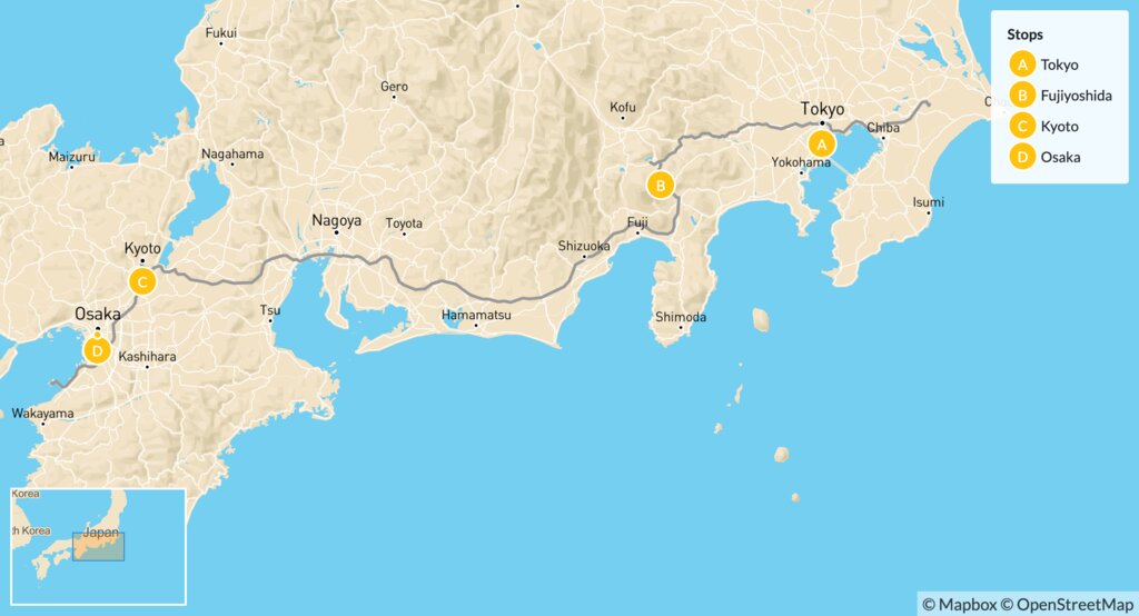 Map of Family Travels in Japan: Tokyo, Fujiyoshida & Kyoto – 7 Days