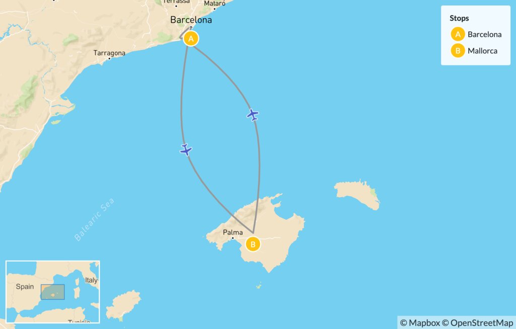 Map of Family Trip to Barcelona & Mallorca – 8 Days