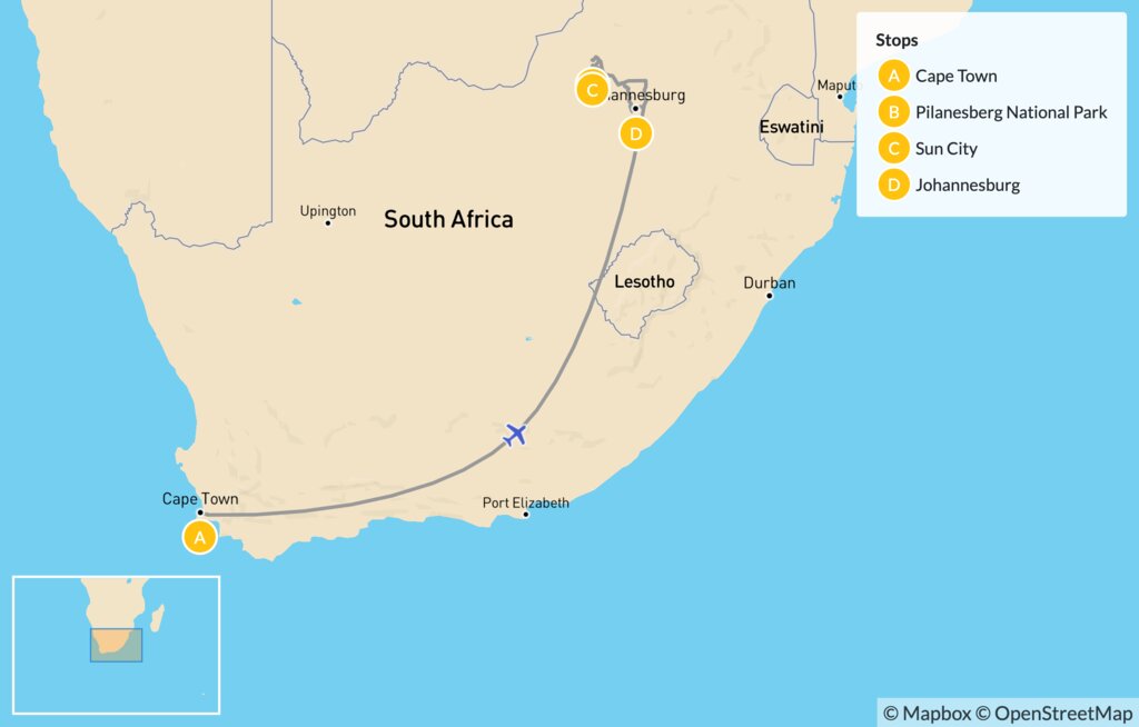 Map of Family Trip to Cape Town, Pilanesberg National Park & Sun City – 14 Days