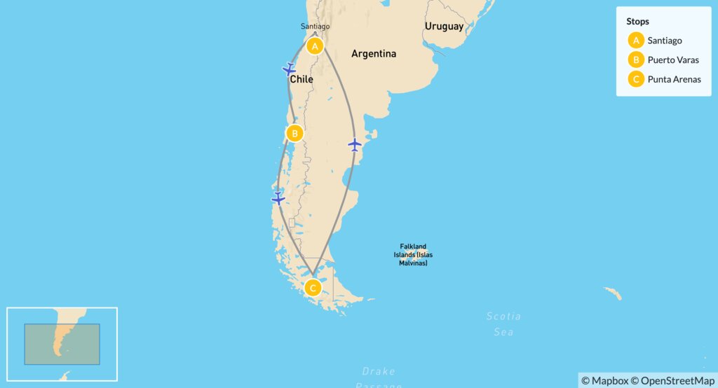 Map of Family Trip to Chilean Patagonia: History, Lakes & Wildlife – 7 Days