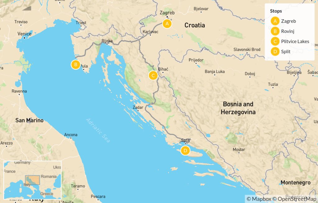 Map of Family Trip to Croatia: Rovinj, Plitvice Lakes & Split – 7 Days