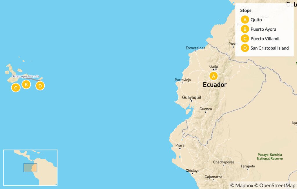 Map of Family Trip to Ecuador & the Galápagos Islands – 14 Days