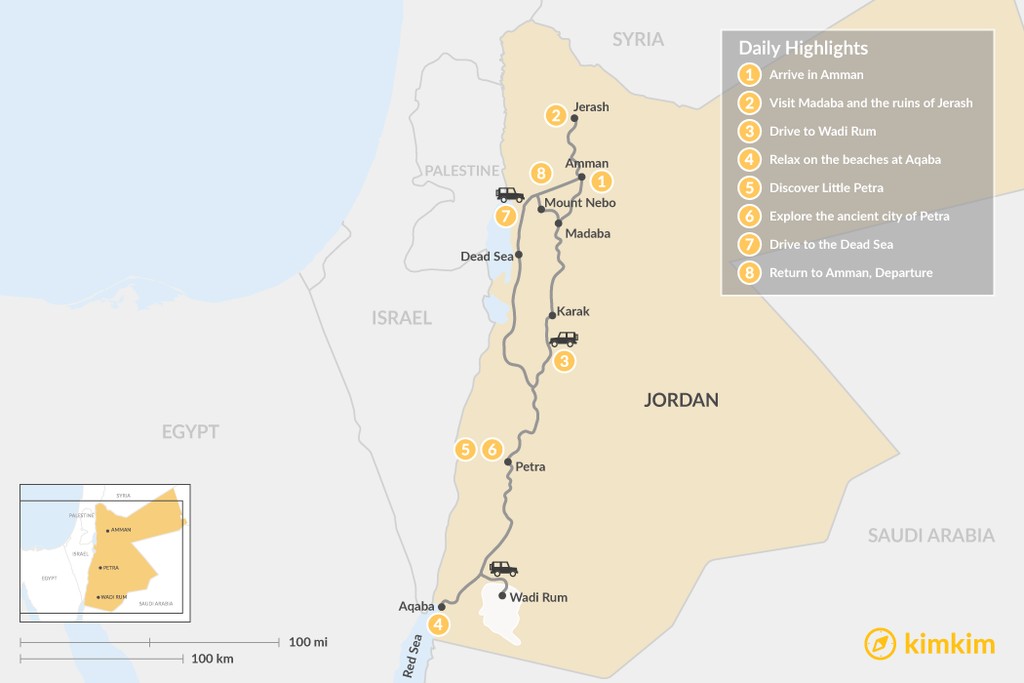 Map of Family Trip to Jordan: Petra, Dead Sea, Wadi Rum, & More – 8 Days