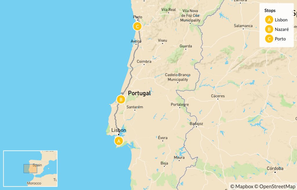 Map of Family Trip to Portugal: Lisbon, Nazaré & Porto – 10 Days
