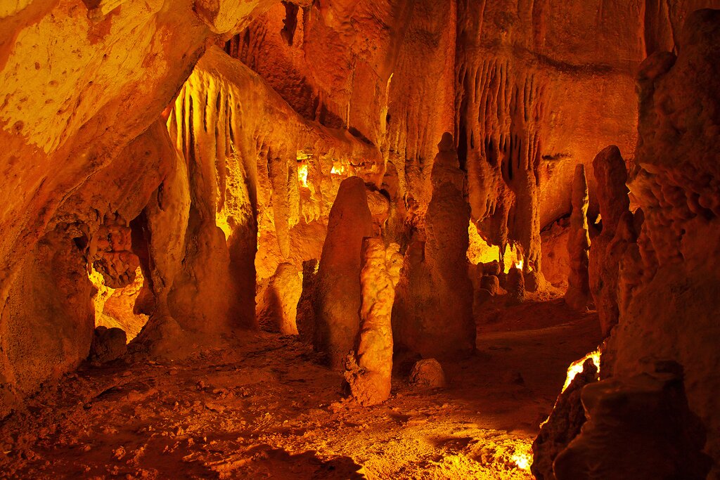 The visit starts with a short film explaining how this cave system was found. Then, follow your guide underground, descending 683 steps about 340 feet (110 m) down into a fascinating world of mineral formations. Curious children will love spotting the stalagmites (which grow up from the cave floor and are formed by mineral deposits dripping onto the floor of the cave) and stalactites (icicle-shaped mineral formations that hang down from the cave ceiling).