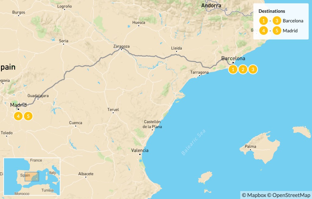 Map of Family Trip to Spain: Barcelona & Madrid – 6 Days