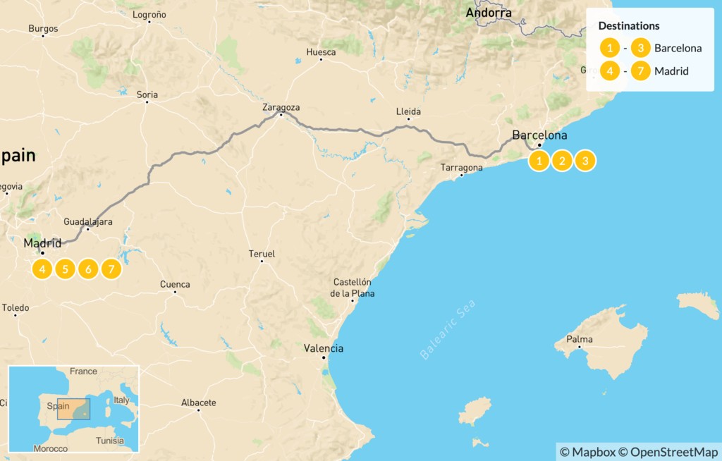 Map of Family Trip to Spain: Barcelona & Madrid – 8 Days