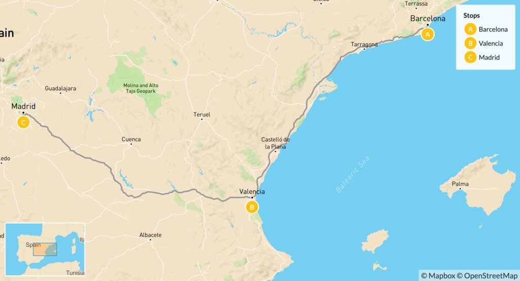 Map of Family Trip to Spain: Barcelona, Valencia & Madrid – 9 Days
