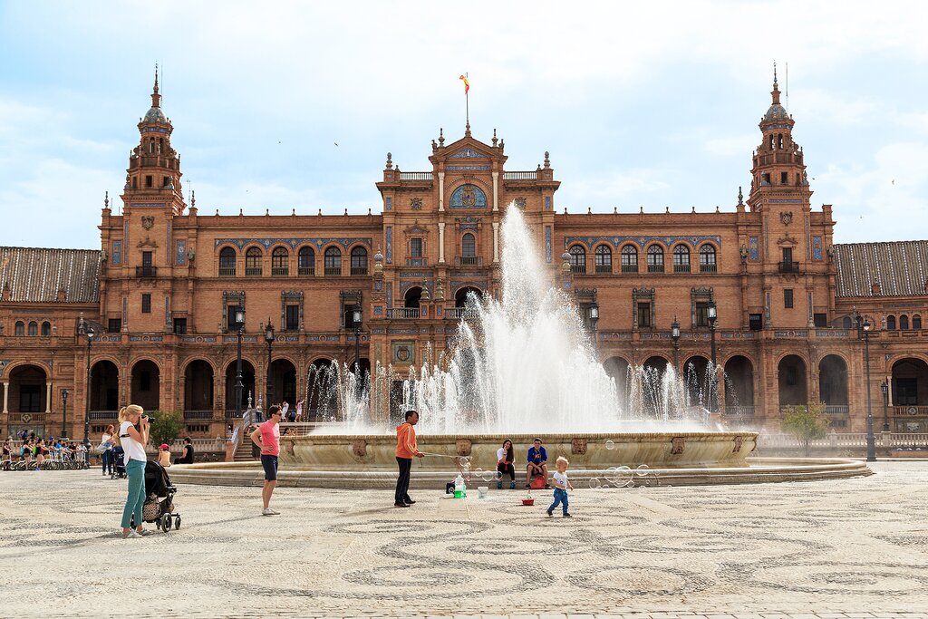 Next, walk to the fashionable Santa Cruz neighborhood, once the Jewish Quarter. It’s a colorful and well-preserved part of the historic center, with many cafés and tapas bars with plenty of kid-friendly food options. In the evening, head back to Santa Cruz and elsewhere in the Old Town for a food tour in family-run taverns. You’ll taste quite a few delicious bites, including the famed gazpacho soup, acorn-fed ham, Iberian pork loin, ceviche, and much more.