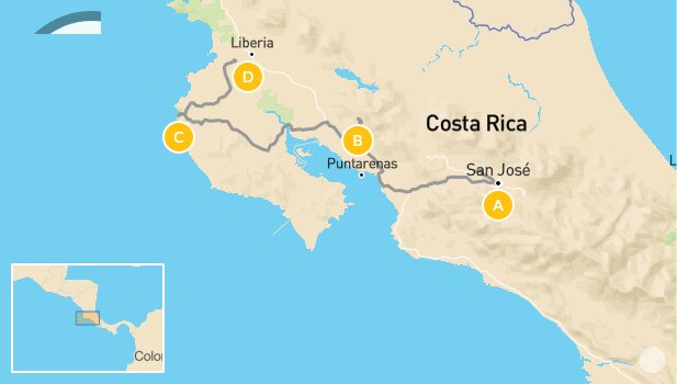 Map of Family Trip to the Cloud Forests, Rivers & Beaches of Costa Rica – 6 Days