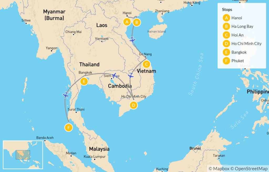 Map of Family Trip to Vietnam & Thailand: From Hanoi to Phuket – 14 Days