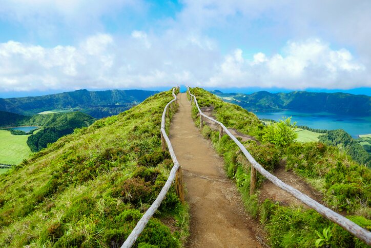 Check out the beaches of São Miguel today. Start with local spots in Ponta Delgada, such as Milícias Beach, considered one of the best beaches for children in the Azores. The unusually darker sand here relates to the island’s volcanic origins, and in addition to changing areas and a bar, there is a pedestrian promenade along the beach with easy access for strollers. Ponta Delgada is also home to the lagoons of Lagoa das Sete Cidades (“Lagoon of the Seven Cities”), a protected region with gorgeous turquoise waters, and Lagoa das Empadadas, a lagoon surrounded by lush forests perfect for hiking.