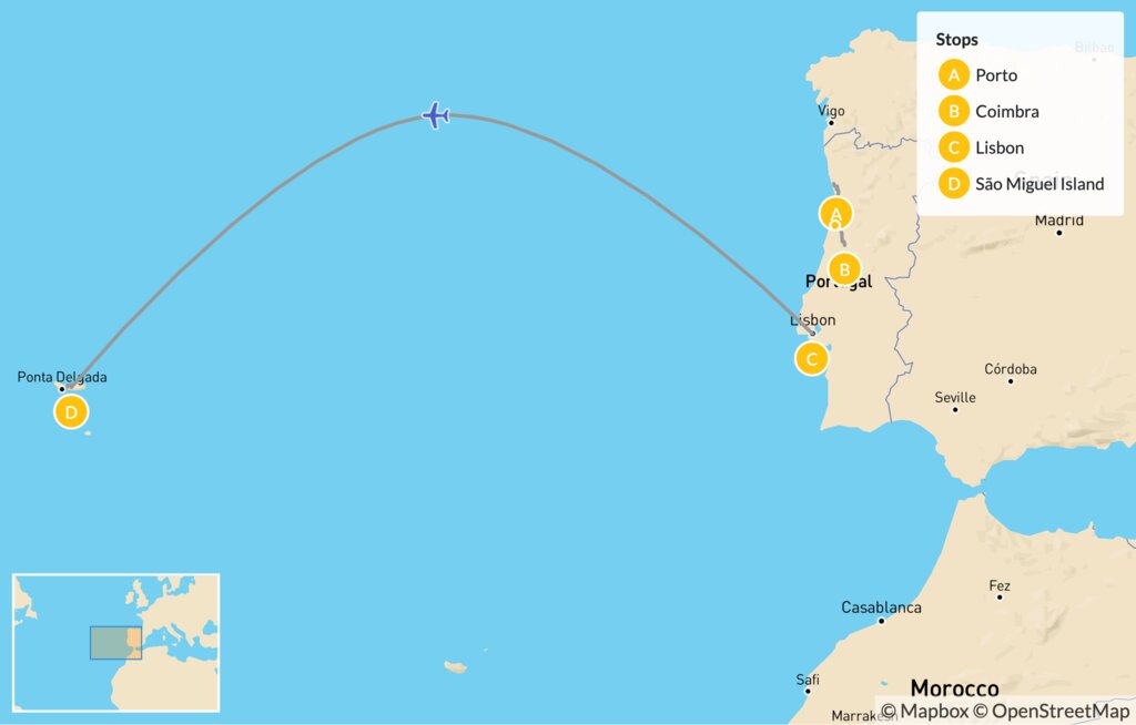 Map of Family Vacation in Portugal & the Azores – 14 Days
