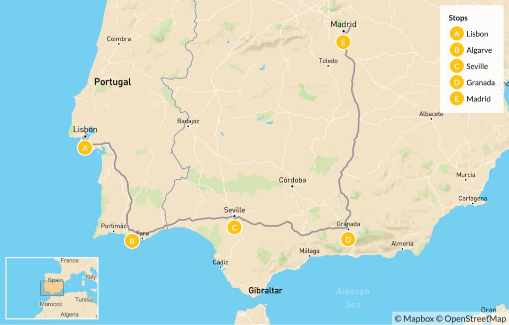 Map of Family Vacation to Spain & Portugal – 14 Days