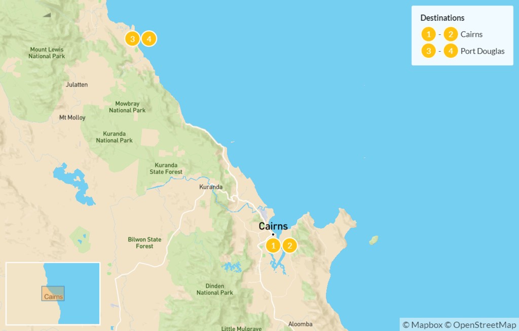 Map of Far North Queensland Getaway: Cairns, Port Douglas, Great Barrier Reef & Daintree Rainforest – 5 Days
