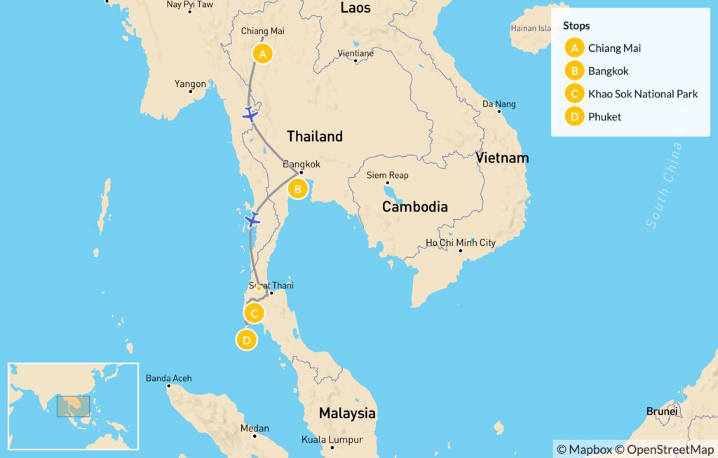 Map of Fascinating Thailand: Chiang Mai, Bangkok, Khao Sok National Park & Phuket – 10 Days