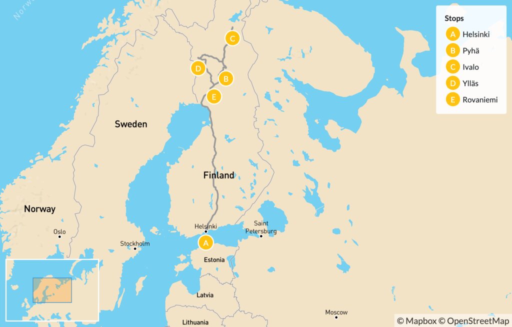 Map of Finland Epic Winter Holiday – 14 Days