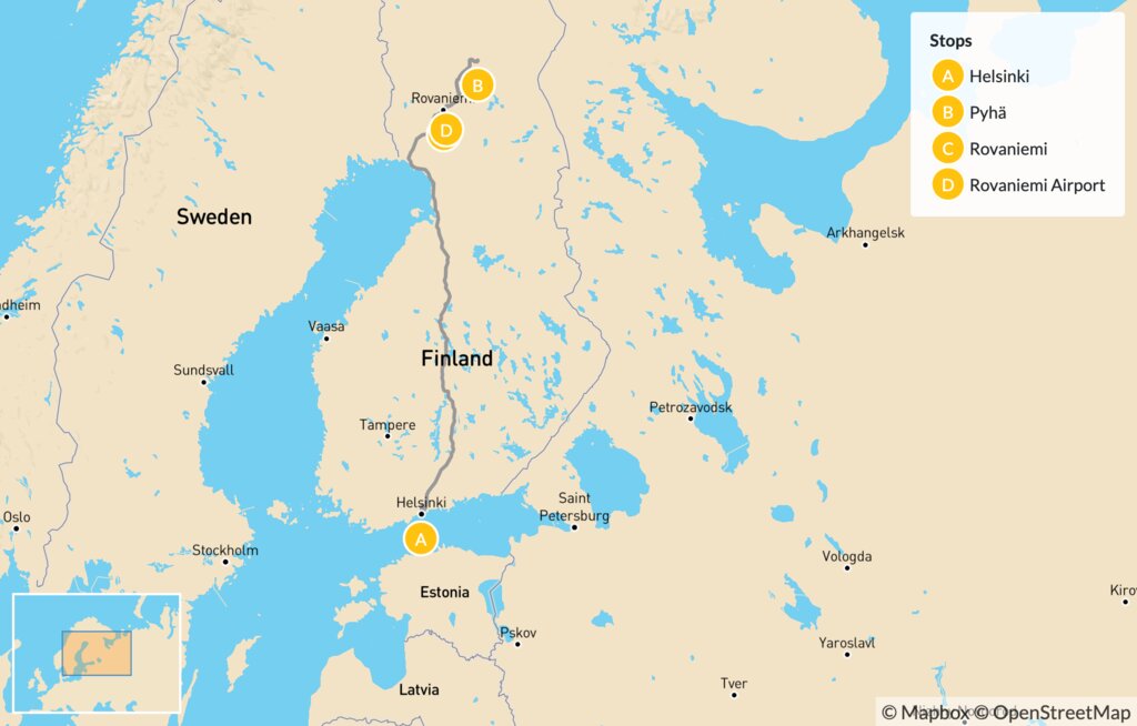 Map of Finland Ultimate Christmas Adventure – 10 Days