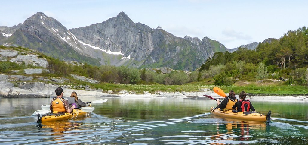 Explore the world-renowned Lofoten Islands by kayak. Your local guide will help you get acquainted with your kayak and equipment, teaching you basic paddling techniques. Once you’re comfortable in the shallow water, head out into the sea and enjoy the views of small islands, expansive bays, and sandy beaches.