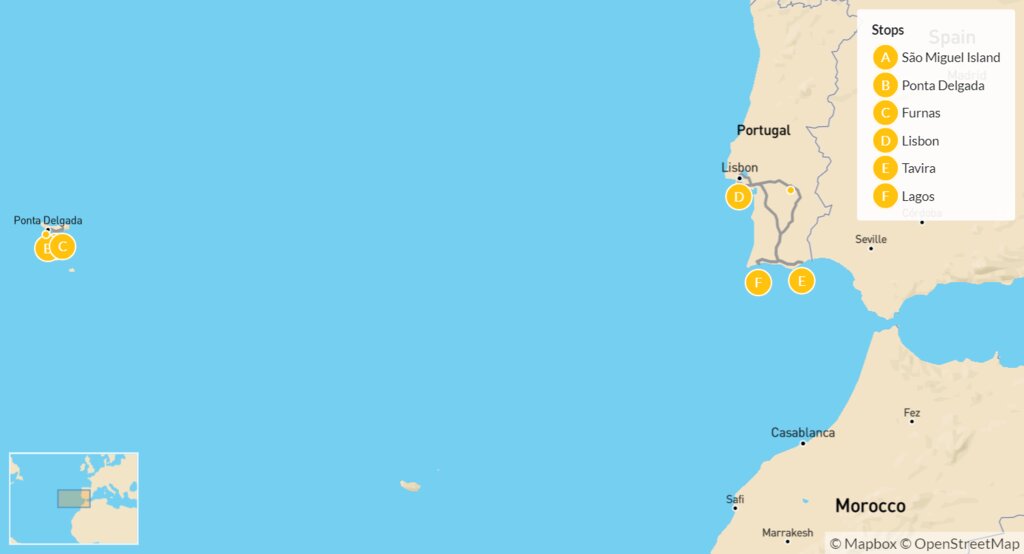 Map of Follow the Sun in Portugal: Azores, Lisbon & the Algarve – 14 Days