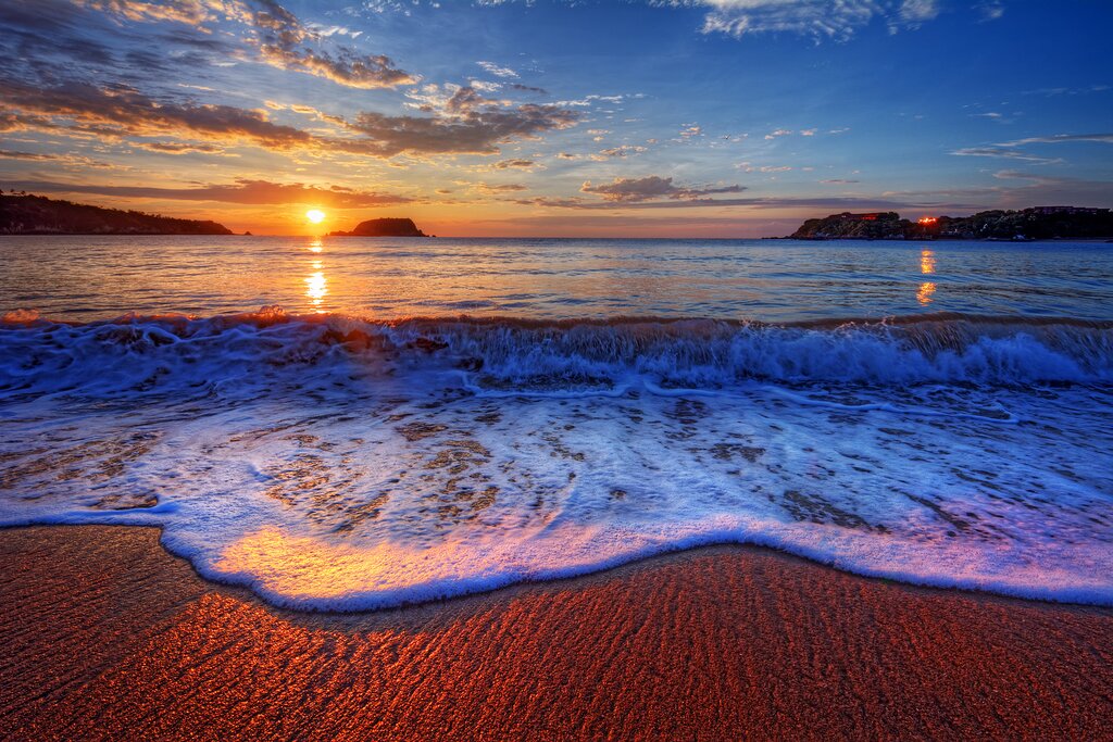 After the ride, you’ll transfer to Laguna Manialtepec, a 3.5-mile (6 km) lagoon located just west of Puerto Escondido. From here board a boat and cross the lagoon to Puerto Suelo Beach to watch the sunset over the water. Then get back on the boat for the most incredible sight of all: bioluminescence. This spectacle is caused by microorganisms in the water that light up when agitated, such as by waves or boat motors. It’s best experienced during a new moon, as that’s when the sky is darkest and the colors here are more vivid, lighting up the waters all around you.