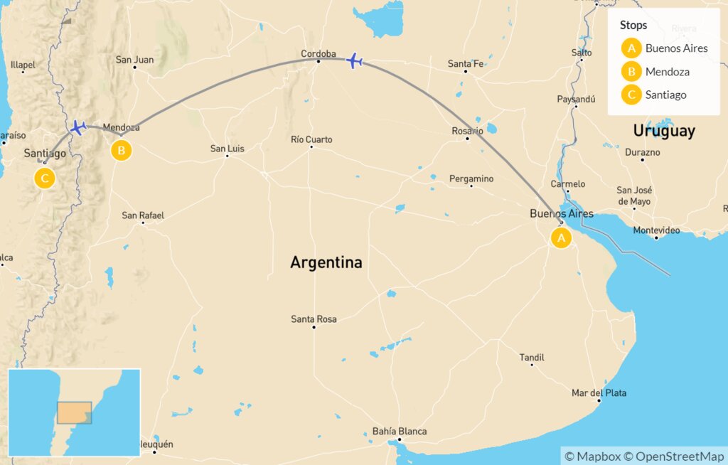 Map of Food, Wine & Culture in Chile & Argentina – 10 Days