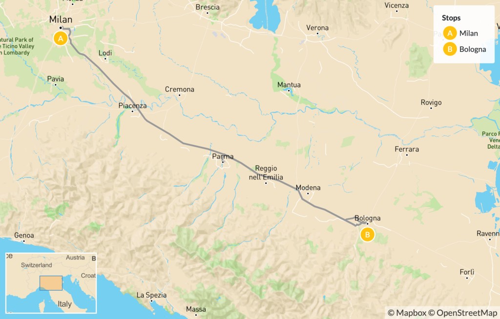Map of Food & Wine in Bologna & Milan – 6 Days