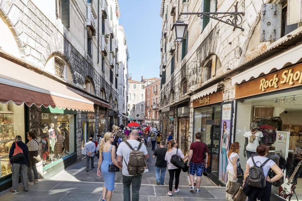 Having seen the highlights of St. Mark’s Square, it’s time to make the 10-minute walk to Rialto Bridge. As you explore Venice on foot, you’ll surely cross one of the four bridges that span the Grand Canal. The Rialto Bridge is the oldest and arguably most well-known. Linking the districts of San Marco and San Polo, the bridge gives amazing views of both sides of the canal.