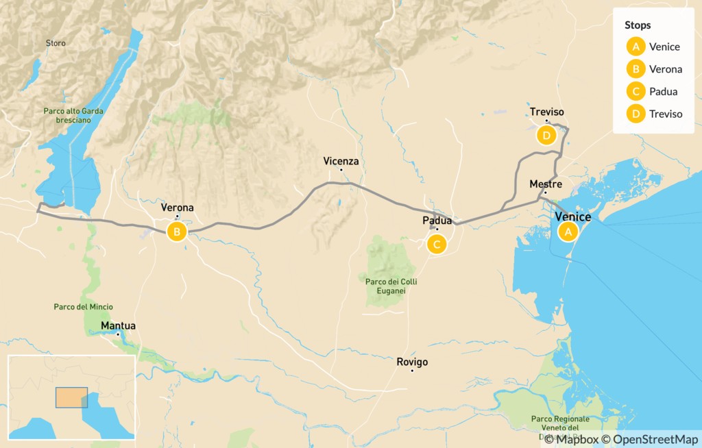 Map of Food & Wine in Verona, Padua & Treviso – 8 Days