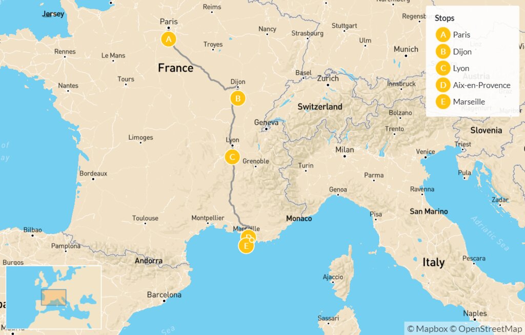 Map of From Paris to Provence: Luxury Wine, Culture & Cuisine – 10 Days