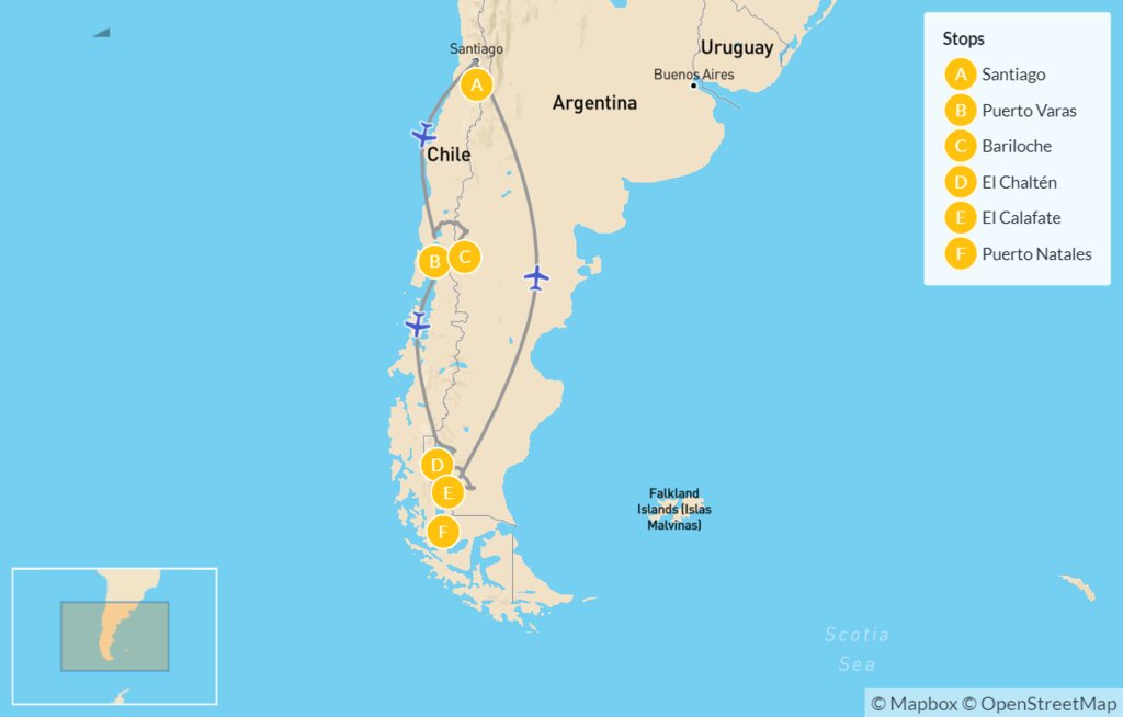 Map of From the Andes to the Lakes: Trekking Adventures Across Patagonia – 21 Days