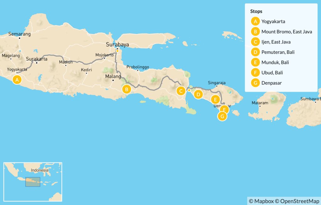 Map of From Yogyakarta to Bali – 14 Days