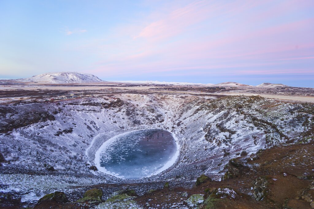 At the end of the exploration, your driver will take you a little ways to Hvalfjörður. This scenic fjord is located in southwest Iceland, and all around it are soaring mountains, green valleys, and abundant birdlife, including Arctic terns and white-tailed eagles. While here, you’ll visit the stunning Glymur Falls. Iceland’s second-tallest waterfall cascades 650 feet (198 m) over cliffs, and the surrounding area offers great nature hikes. After your trek, you can soothe your muscles in natural hot springs.