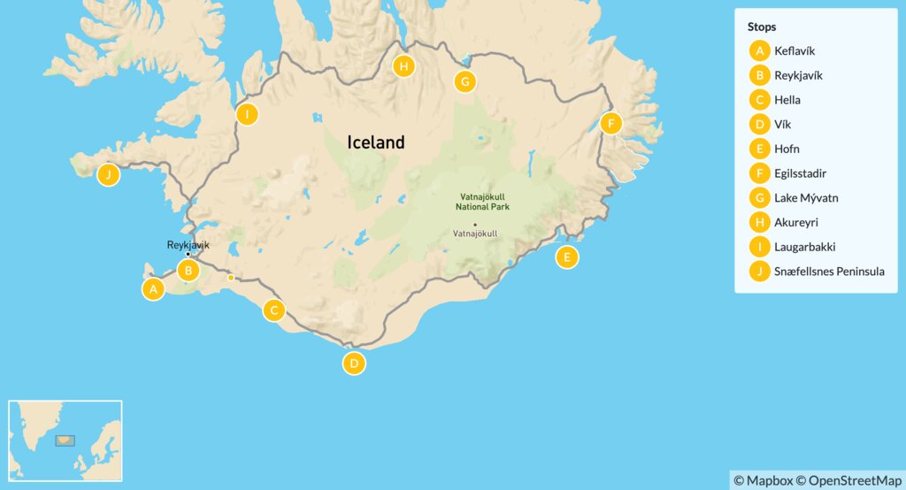 This two-week self-drive adventure will take you around the whole of Iceland—north, south, east, and west. It starts with city tours and nightlife in Reykjavík, then a trip south for off-roading, glaciers, lava caving, and hunting the northern lights. Continue up the rugged Eastfjords and tour the geothermal wonderland of the north before finishing the trip at western waterfalls and the relaxing Blue Lagoon.