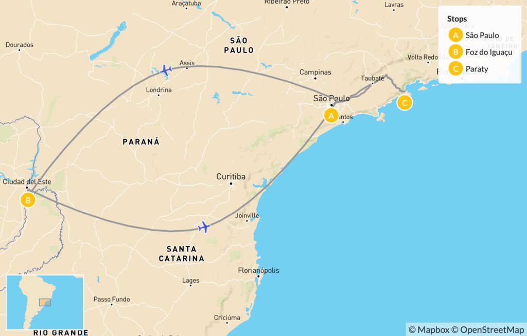Map of Fun-Filled Family Tour of Brazil: Iguaçu Falls, Paraty & São Paulo – 10 Days
