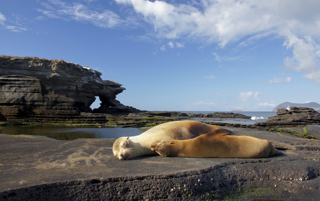 Today you’ll head over to Isla Española, landing at a striking white beach on Gardner Bay, which also happens to be an important breeding site for Pacific green turtles. However, its main attraction is its large colony of Galápagos sea lions. Females stay year-round in this natural nursery, suckling their pups up to the age of three years, though they learn how to fish at five months. Take some time to enjoy and photograph the spectacle.