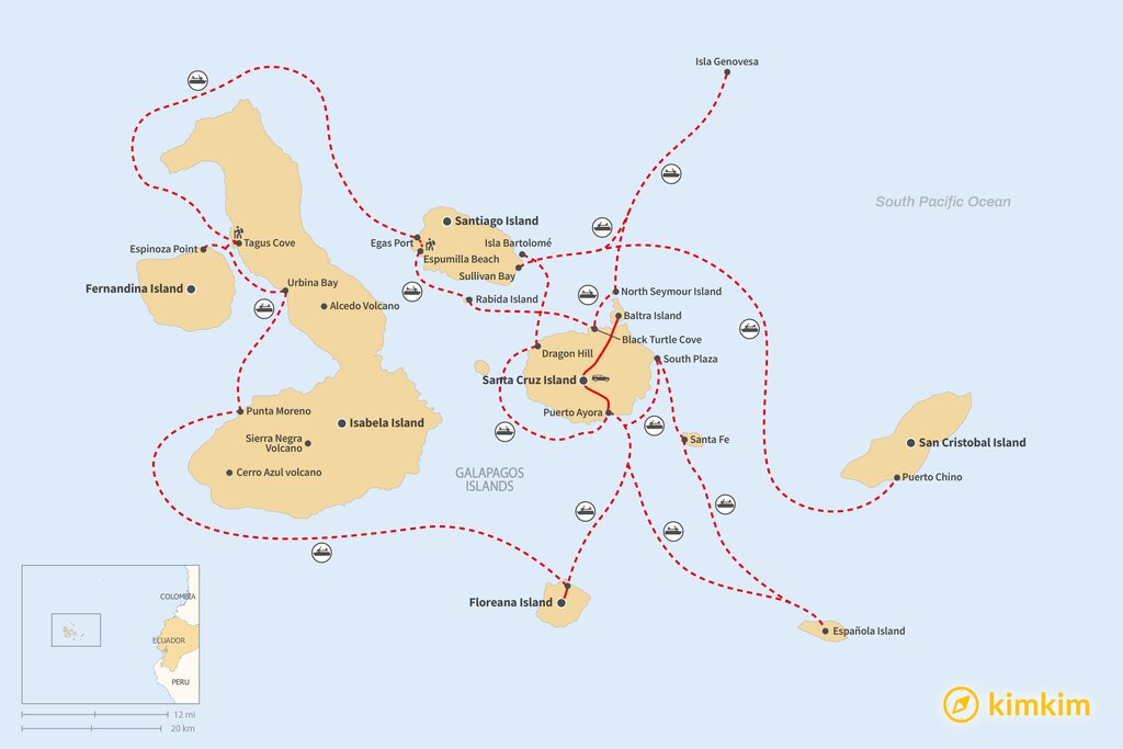 Map of Galápagos Grandeur: Explore the Archipelago by Luxury Yacht – 14 Days
