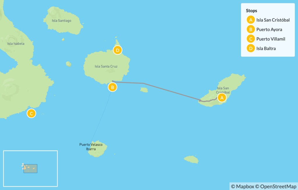 | Day 1 | Arrive on Isla San Cristóbal, Island Tour | Isla San Cristóbal |
