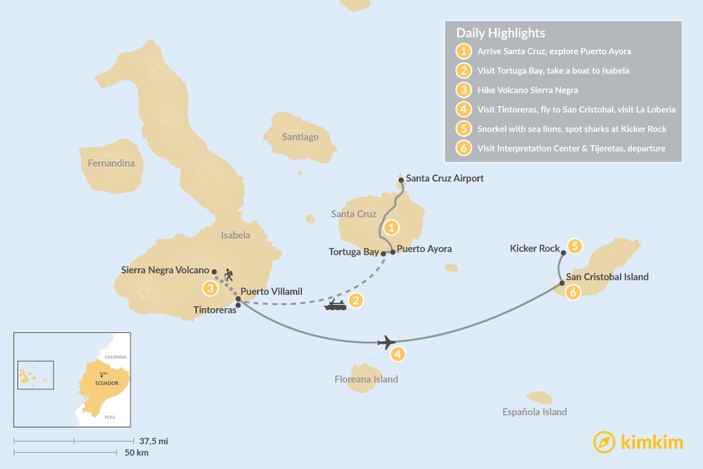 Map of Galapagos Islands Land-Based Adventure Tour: 6 Days