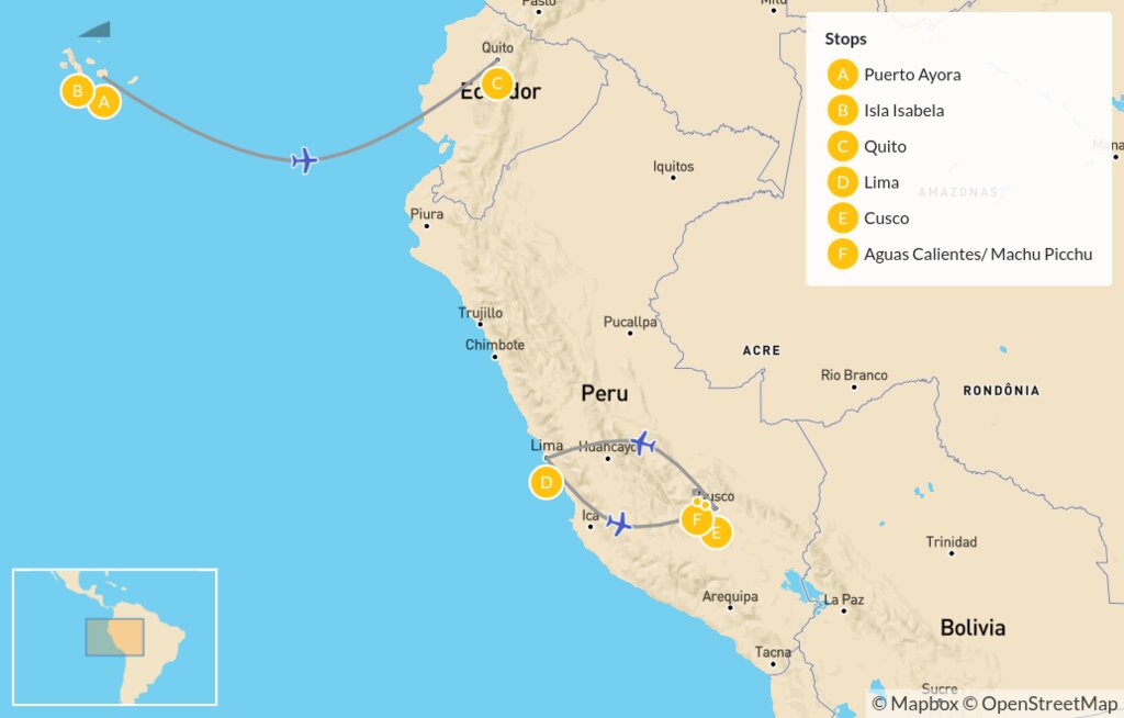 Map of Galápagos Islands & Machu Picchu Adventure – 10 Days