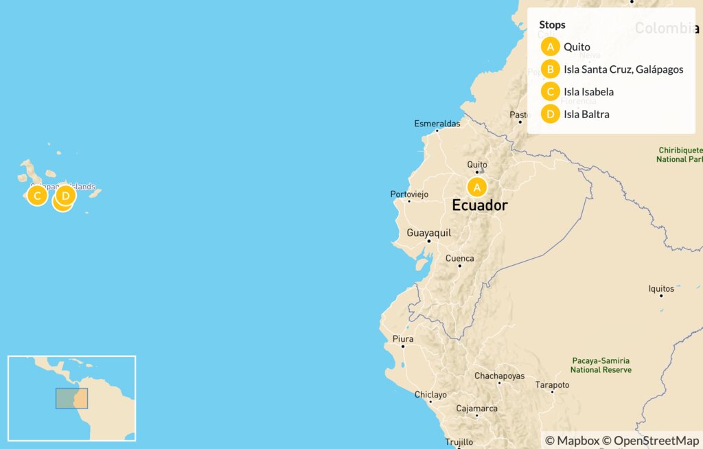 Map of Gems of the Galápagos Islands & Quito: Isla Santa Cruz & Isla Isabela – 8 Days