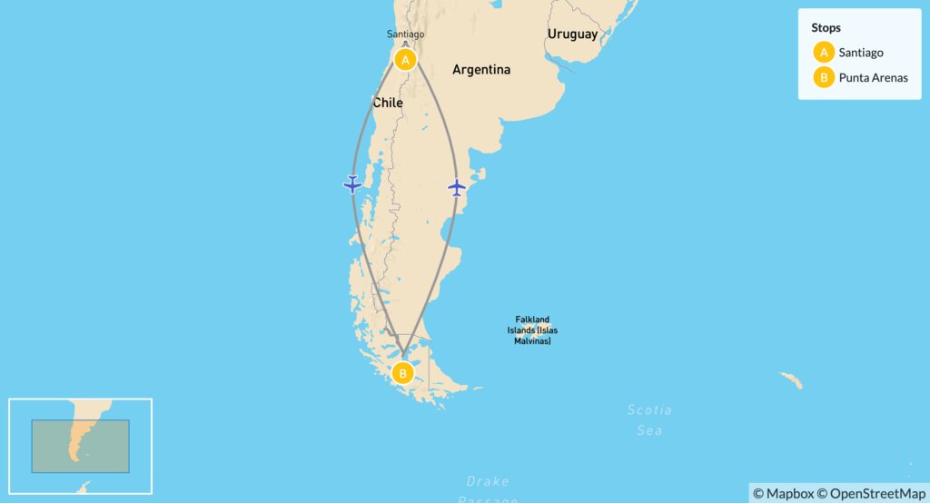 Map of Gentle Family Tour of Chilean Patagonia: Santiago & Punta Arenas – 7 Days