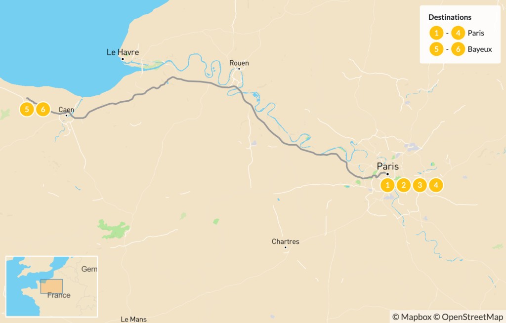 Map of Getaway to Western France: Paris, Normandy & Brittany – 7 Days